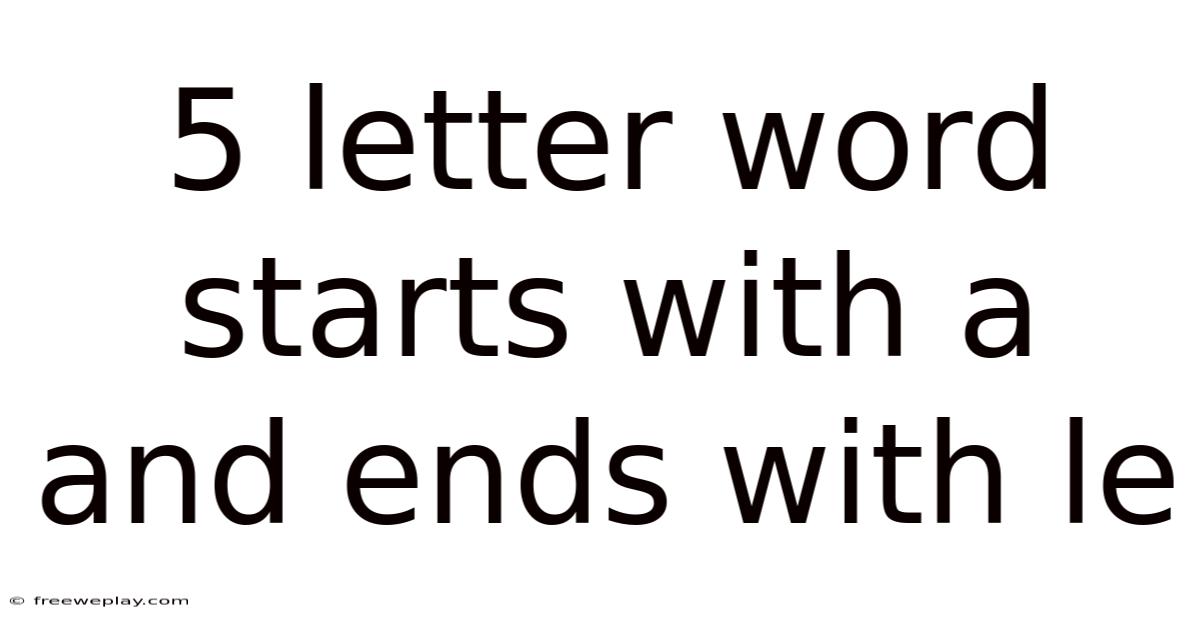 If you've ever found yourself pondering the intriguing puzzle of finding a five-letter word that starts with "a" and ends with "le," you're certainly not alone. This linguistic challenge has puzzled word game enthusiasts, crossword solvers, and curious minds alike. Practically speaking, while the English language offers an abundance of words, finding one that precisely fits these specific criteria can be surprisingly tricky. Think about it: in this comprehensive article, we'll explore the nuances of this word search, examine the closest matches, and provide you with a thorough understanding of the topic. Whether you're preparing for a word game, solving a puzzle, or simply expanding your vocabulary, this guide will serve as your definitive resource for understanding five-letter words beginning with "a" and ending with the "-le" sound or letter combination.
