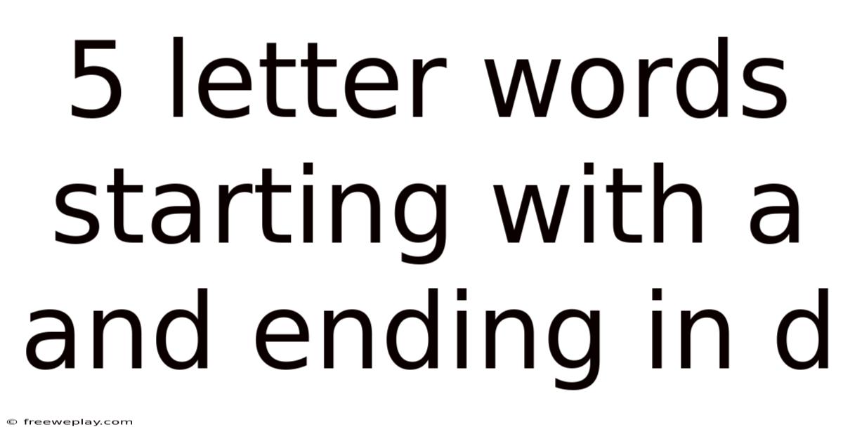 When you think of word puzzles, crossword clues, or the thrill of a quick game of Scrabble, the challenge often lies in finding the right 5‑letter words that start with “A” and end with “D.In this article, we’ll dive deep into the world of these words, exploring their meanings, origins, and practical uses. ” This specific set of words is not only useful for players of word games but also for language learners, teachers, and anyone fascinated by the quirks of English spelling. Whether you’re preparing for a spelling bee, polishing your vocabulary, or simply curious about the structure of English words, this guide will equip you with knowledge and examples that go beyond the surface Not complicated — just consistent..