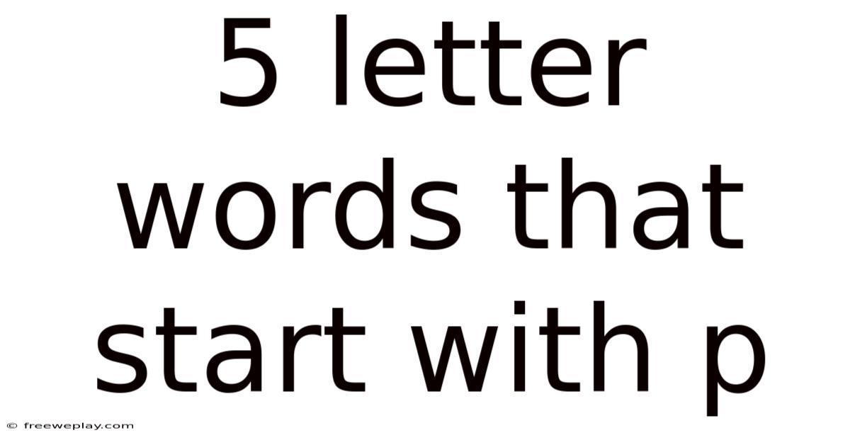 Five-letter words that start with P constitute a rich and diverse category of English vocabulary that offers significant value to language learners, writers, speakers, and word game enthusiasts alike. Day to day, from common everyday terms like "people" and "peace" to more specialized vocabulary like "pique" and "prism," these words serve essential functions in communication across all contexts. Understanding the various categories—nouns, verbs, adjectives—and their appropriate uses enables more precise and effective expression in both written and spoken English But it adds up..
