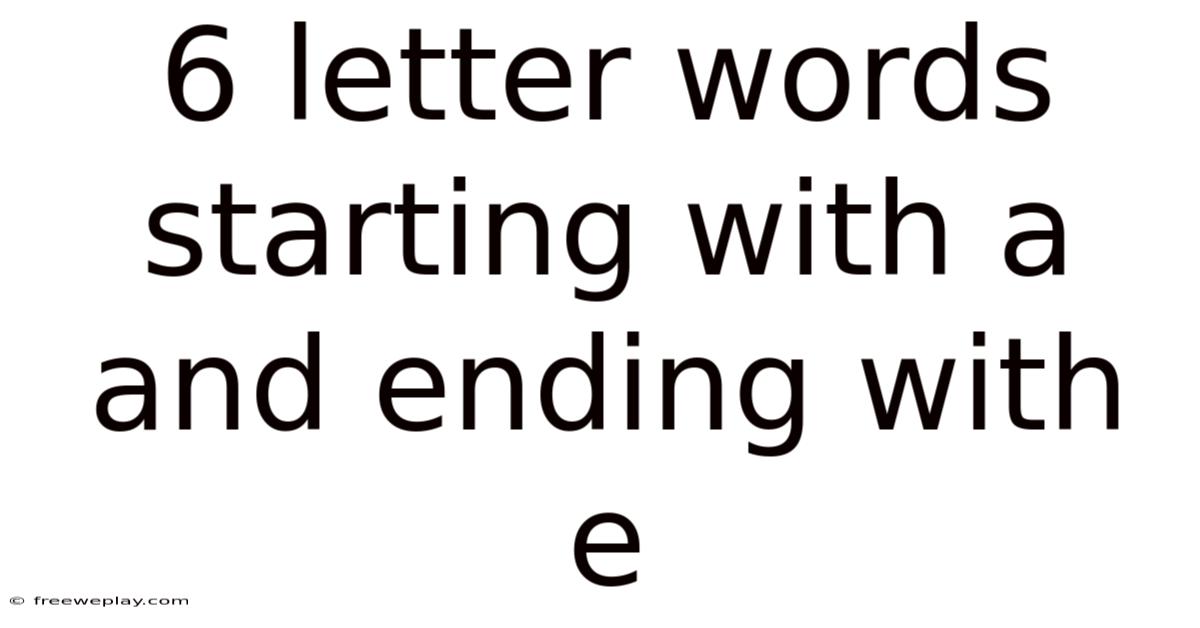 From a linguistic perspective, six-letter words starting with "A" and ending with "E" often follow specific phonetic and morphological rules. But the "A" at the beginning provides a strong, open sound, while the "E" at the end often softens the word, creating a balanced and harmonious pronunciation. This structure is particularly common in English due to the language's tendency to favor vowel-consonant patterns And that's really what it comes down to. Surprisingly effective..