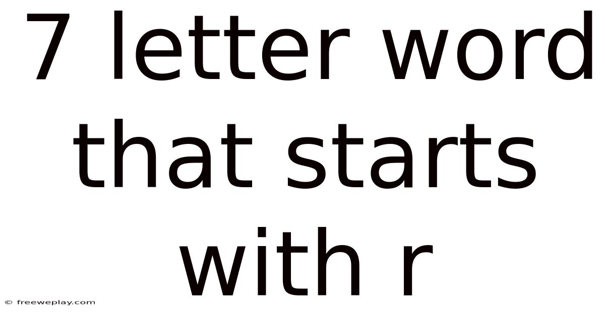When you’re playing word games, solving crossword puzzles, or simply expanding your vocabulary, a seven‑letter word that starts with “R” can be the perfect key to tap into a tough clue. In practice, while the English language boasts thousands of words, the subset that meets these exact criteria—seven letters long and beginning with the letter R—is surprisingly rich and diverse. Because of that, in this article we will explore the most common and useful seven‑letter “R” words, understand how they are formed, see them in real‑world contexts, and learn how to avoid typical pitfalls when searching for or using them. Whether you’re a Scrabble champion, a language‑learning enthusiast, or just curious about word patterns, this guide will give you a complete, SEO‑friendly overview that feels both authoritative and easy to digest.