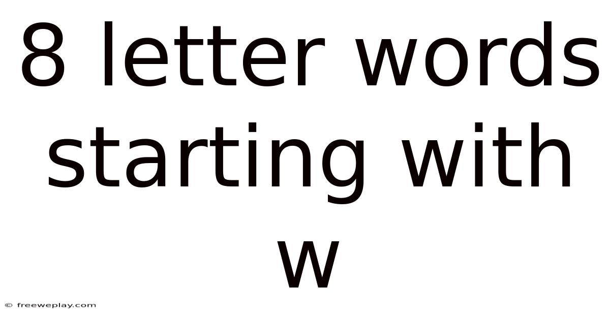 Eight-letter words starting with W represent a fascinating and useful category within the English language. Day to day, from common everyday terms like "whatever" and "workshop" to more specialized vocabulary, these words offer rich opportunities for communication and expression. Understanding this category can benefit anyone looking to improve their vocabulary, perform better in word games, or simply appreciate the diversity and complexity of English.