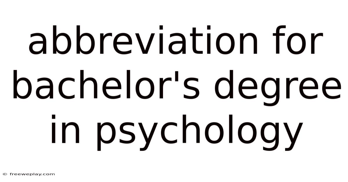 When you see a résumé, a LinkedIn profile, or a university transcript, you’ll often encounter a short string of letters that represents a completed college program. Understanding these abbreviations is essential for students, employers, and anyone navigating academic or professional documentation. S. Psych**, depending on the type of degree awarded. For a bachelor’s degree in psychology, the most common shorthand is B.Plus, a. This article unpacks the meaning behind the abbreviation, explains why different formats exist, and guides you through the proper way to use and interpret them. Psych or **B.By the end of the read, you’ll be able to recognize, write, and explain the abbreviation for a bachelor’s degree in psychology with confidence And that's really what it comes down to..