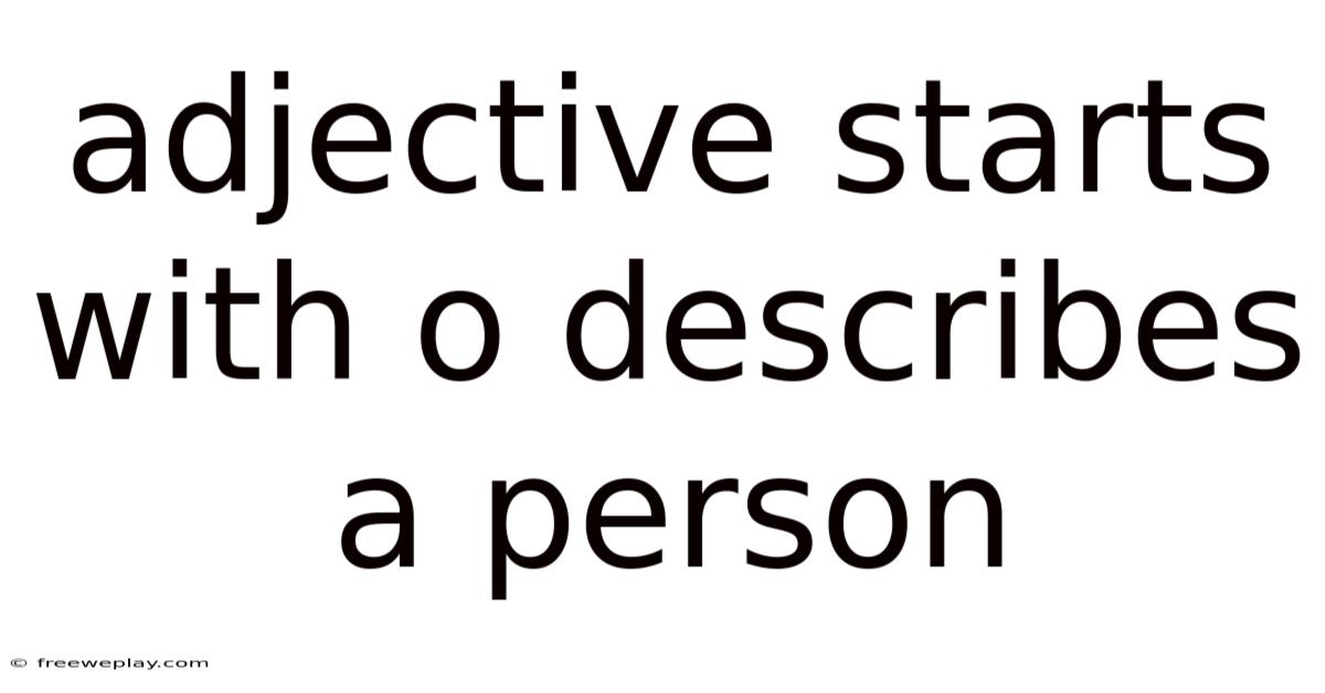 At the end of the day, the seemingly simple act of choosing an adjective can have a profound effect on how we perceive and communicate about others. Because of that, "O"-starting adjectives, with their inherent associations of warmth, openness, and emotional depth, offer a powerful tool for nuanced description. Practically speaking, by understanding their functional roles, contextual effectiveness, and underlying psychological and linguistic principles, we can harness their potential to enhance clarity, grow empathy, and ultimately, improve the quality of our interactions. Mastering this subtle art requires practice, awareness, and a keen sensitivity to the interplay between language, perception, and culture Still holds up..