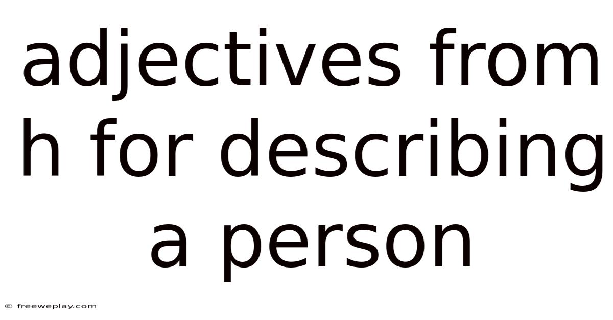 Adjectives from H are English words that start with the letter H and modify or describe nouns, especially people. On the flip side, they help us communicate qualities such as temperament, habits, physical traits, and emotional states. What makes H adjectives especially useful is their ability to cover a wide emotional and descriptive spectrum. Some of these adjectives are common and easy to use, like happy or honest, while others are more sophisticated, such as humble or haughty. You can use them to praise someone sincerely, to critique gently, or to paint a neutral but accurate picture Still holds up..