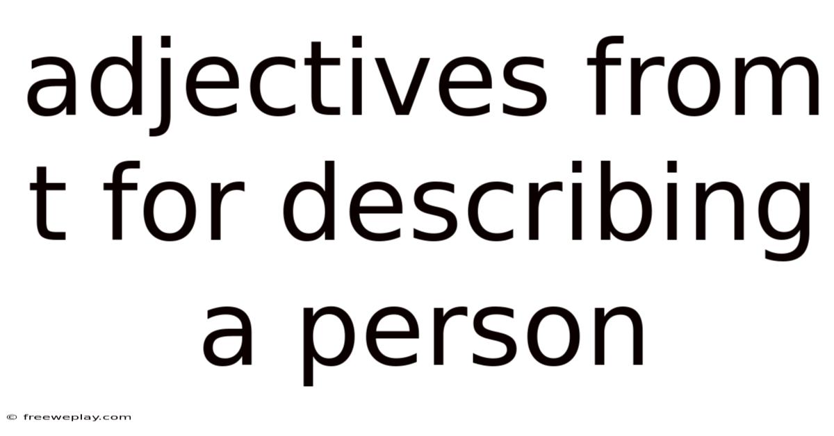Step‑by‑Step or Concept Breakdown Below is a practical way to categorize and use adjectives from T for describing a person. Think of it as a mental checklist you can run through when you need the perfect descriptor.