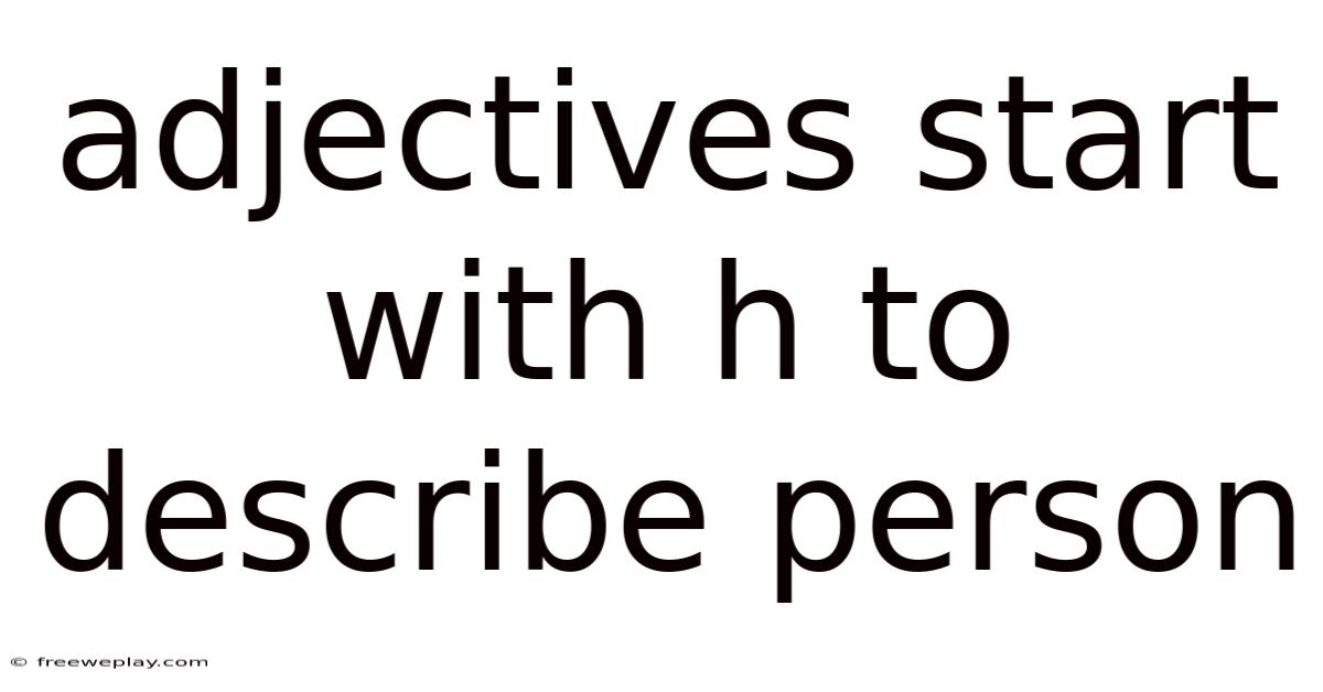 Adjectives starting with "H" offer a powerful way to describe people with precision and color. Also, from highlighting positive traits like honesty and humility to noting physical attributes such as handsomeness or health, these words enrich our ability to communicate effectively. By understanding their meanings, contexts, and nuances, you can choose the right adjective to capture the essence of a person in any situation. Whether you're writing a story, giving a compliment, or simply expanding your vocabulary, mastering "H" adjectives will help you express yourself more clearly and vividly The details matter here..