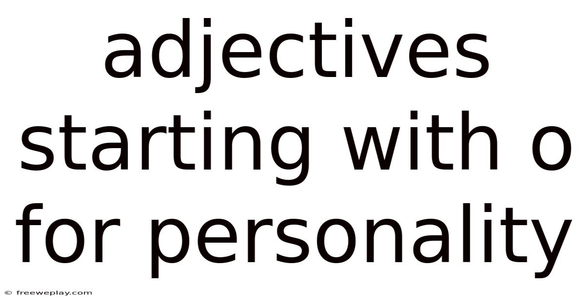 The English language offers a rich tapestry of words to describe the detailed nuances of human personality. Also, among these, adjectives beginning with the letter "O" provide a fascinating window into traits ranging from the admirable to the challenging. Because of that, understanding these descriptors isn't just about vocabulary expansion; it's about gaining deeper insight into ourselves and others, fostering clearer communication, and appreciating the complex mosaic of human behavior. This exploration looks at the diverse adjectives starting with "O" that shape our understanding of personality, moving beyond simple definitions to uncover their meaning, context, and impact.