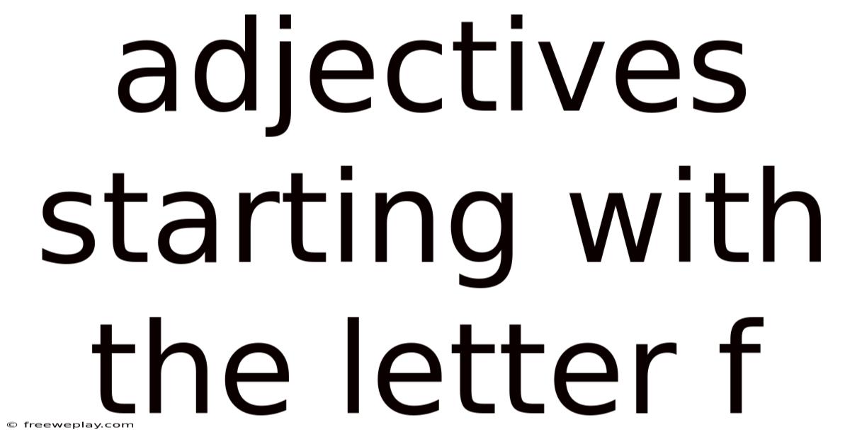 Adjectives starting with the letter F offer a rich tapestry of descriptive possibilities, from the everyday to the esoteric. Because of that, they let us paint vivid pictures, convey complex emotions, and articulate nuanced ideas with precision. Worth adding: by understanding their meanings, connotations, and appropriate usage, we can harness the power of these F-adjectives to enhance our communication and expression. Whether you're a writer seeking to add depth to your prose, a speaker aiming to captivate your audience, or simply someone looking to expand their vocabulary, exploring the world of F-adjectives can be a rewarding and enlightening journey. Remember, the right adjective can transform a simple statement into a powerful expression, and with F-adjectives, you have a wealth of options at your fingertips Surprisingly effective..