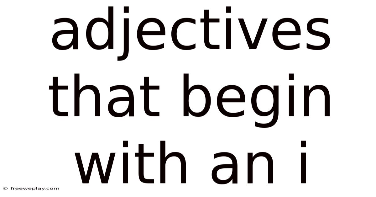 Adjectives that begin with "I" represent a rich and varied category of descriptive language that enhances our ability to communicate with precision and color. From everyday conversation to sophisticated literary expression, these words help us convey complex ideas, emotions, and observations. But by understanding their meanings, proper usage, and the nuances they bring to language, we can become more effective communicators and more appreciative readers. Whether you're a student looking to improve your writing, a professional aiming to enhance your communication skills, or simply a language enthusiast, mastering the use of I-adjectives will undoubtedly enrich your linguistic repertoire.
