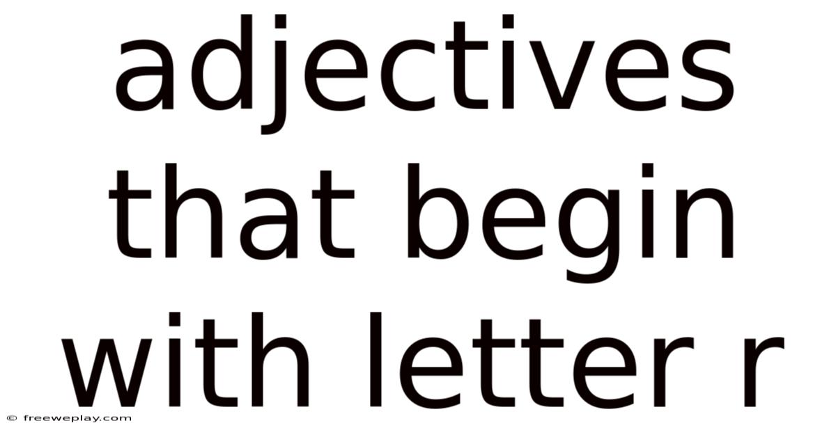 The term adjectives that begin with letter R refers to a specific category of descriptive words that start with the letter R. The versatility of these adjectives makes them indispensable in both casual and formal communication. Some R-starting adjectives are used to describe positive traits, such as reliable or respectful, while others might convey negative or neutral qualities, like rough or rude. The importance of mastering these adjectives lies in their ability to enhance clarity and expressiveness in writing and speech. While the letter R is one of the most common letters in the English alphabet, the adjectives associated with it are diverse and often carry strong connotations. Still, their effectiveness depends on proper usage, which we will explore in greater detail. Practically speaking, for example, words like radiant, resilient, or remarkable fall into this category. These adjectives serve to modify nouns, providing additional information about their qualities, characteristics, or states. By understanding how to select and apply R-starting adjectives, individuals can improve their descriptive skills, making their language more engaging and precise Nothing fancy..