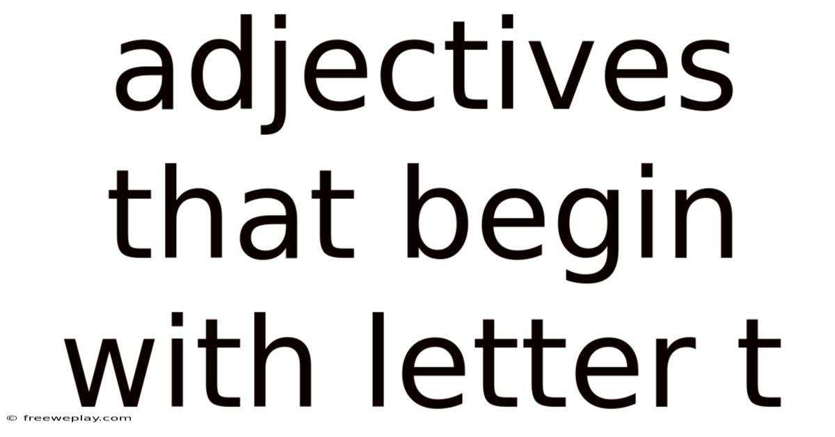 Language is our primary tool for painting vivid pictures, conveying nuanced emotions, and precisely describing the world around us. At the heart of this descriptive power lie adjectives—the modifying words that add color, size, feeling, and quality to nouns. While every letter of the alphabet contributes to our adjective lexicon, some letters yield particularly rich and versatile collections. This article delves into the fascinating world of adjectives that begin with the letter T, exploring their sheer variety, their subtle shades of meaning, and their indispensable role in both everyday communication and sophisticated writing. From the tangible ("tall," "tangible") to the abstract ("tragic," "tranquil"), T-adjectives form a robust toolkit for any speaker or writer seeking to be more precise, evocative, and expressive. Understanding this subset not only expands your vocabulary but also sharpens your ability to perceive and articulate the world with greater clarity.