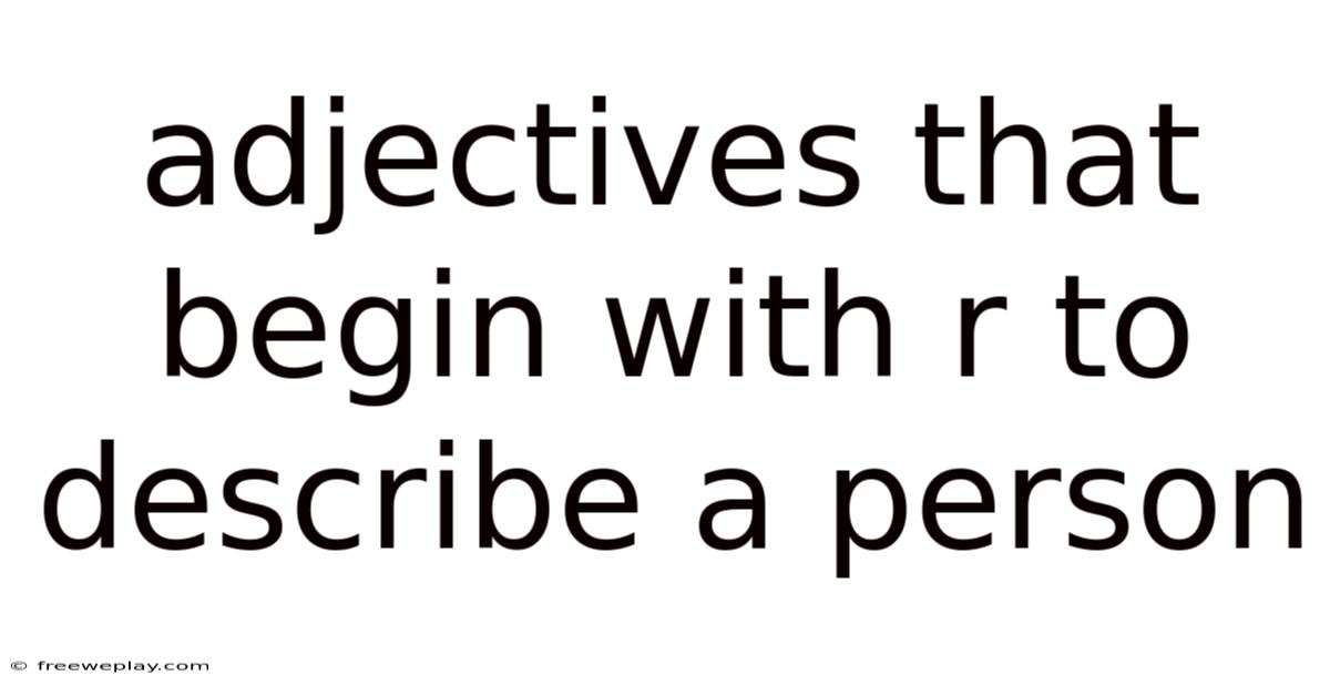 Adjectives that begin with R offer a versatile and expressive way to describe people, whether you're highlighting their strengths, critiquing their behavior, or simply painting a vivid picture of who they are. By understanding the nuances of these words and using them thoughtfully, you can enhance your communication and ensure your descriptions are both accurate and impactful. From "reliable" to "reckless," the letter R provides a rich palette of descriptive possibilities that can bring your words to life And that's really what it comes down to..
