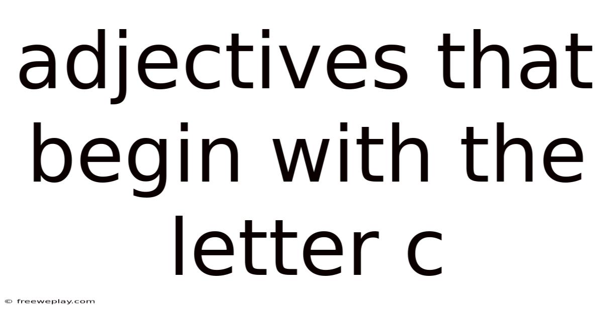 Adjectives that begin with the letter C form a versatile toolkit for anyone who wishes to paint clearer, more compelling pictures with words. Here's the thing — whether you are drafting a research paper, crafting a brand slogan, or simply describing a sunset, a well‑chosen C‑adjective can turn ordinary prose into a memorable experience. By understanding their categories, selecting the right term through a systematic step‑by‑step process, and being aware of common pitfalls, writers can wield C‑adjectives with confidence and precision. From concrete textures (crunchy, creamy) to abstract qualities (candid, compassionate), these descriptors enrich narrative, sharpen academic arguments, and boost marketing impact. Keep this guide handy, expand your personal lexicon, and let the power of C transform your communication.