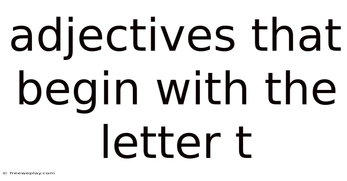 In academic writing, creative writing, or even everyday conversation, the use of adjectives starting with "T" can add depth and clarity. They allow writers to express complex ideas succinctly and effectively. This article will explore the various uses, examples, and tips for incorporating these adjectives into your writing seamlessly.