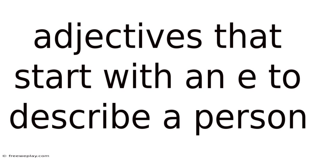 The significance of these e-starting adjectives extends into various domains, from literature and psychology to everyday communication and professional evaluation. Also, they provide the vocabulary necessary to express subtle distinctions in behavior and character, such as the difference between being merely efficient and being profoundly exemplary. By mastering these terms, we enhance our ability to convey respect, admiration, critique, or empathy with greater accuracy. This article will serve as a thorough look, breaking down the meaning, application, and impact of these specific descriptive words, ensuring that you can put to use them to paint a vivid and authentic portrait of any individual.