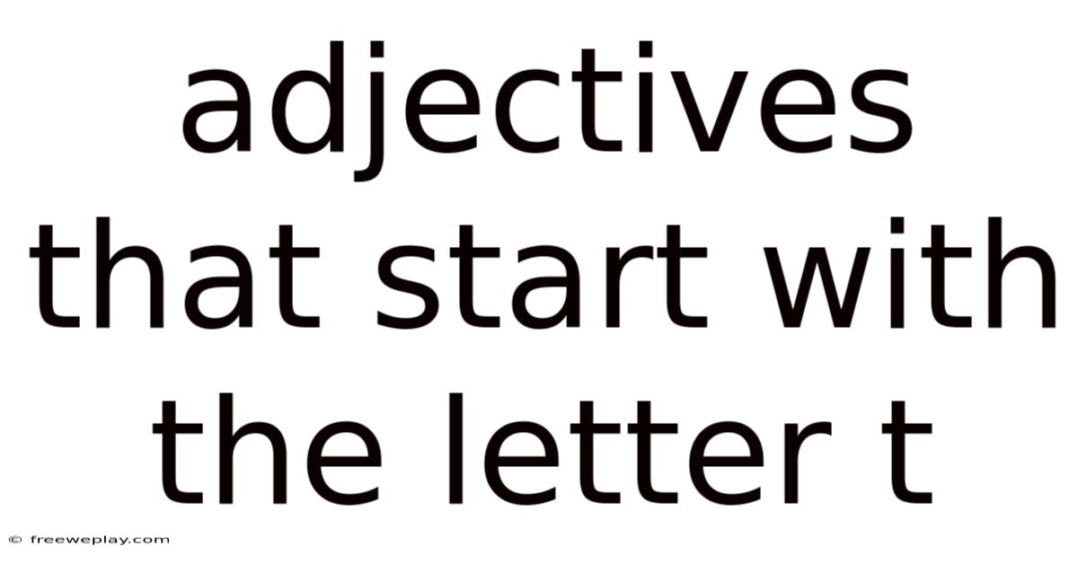 This complete walkthrough explores the linguistic function, practical application, and cognitive impact of adjectives that start with the letter t. On the flip side, you will learn how to categorize them, integrate them naturally into sentences, avoid common pitfalls, and understand the theoretical frameworks that explain why certain t-adjectives resonate more strongly than others. By the end of this article, you will possess a structured, actionable understanding of how these descriptive tools elevate your writing and speaking to a more polished, intentional level Still holds up..