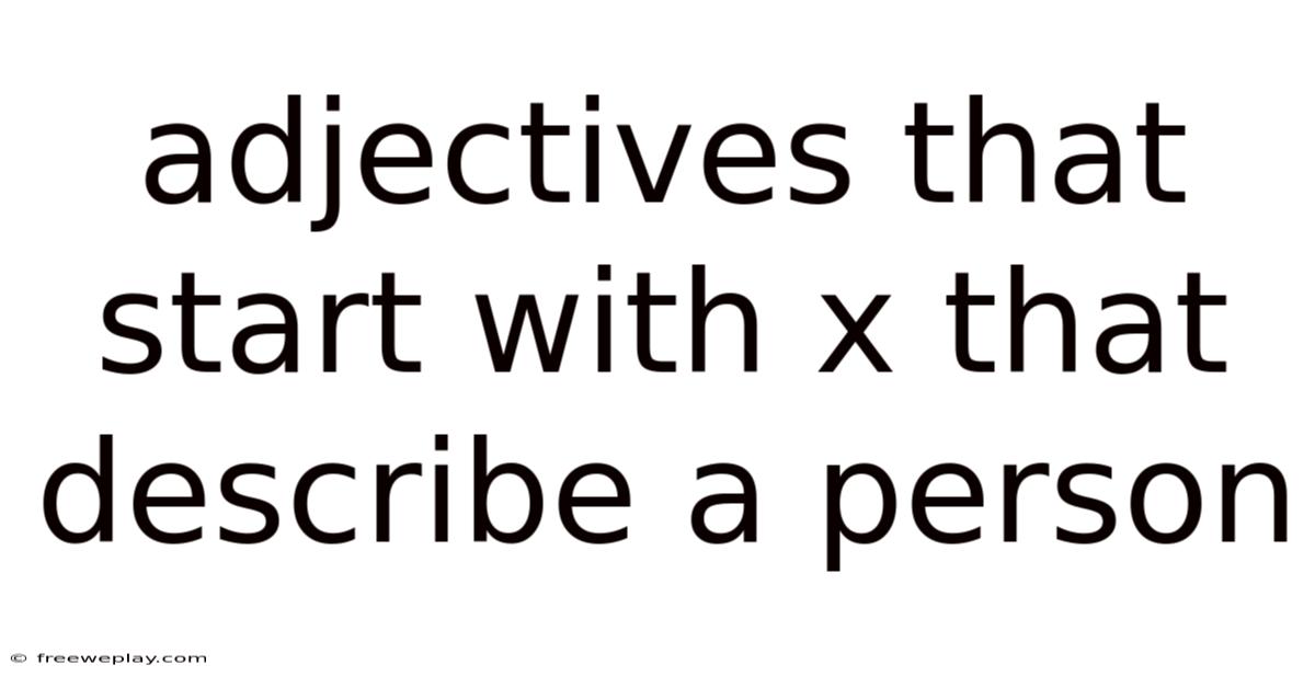 Adjectives that begin with "X" are often used to describe a person’s personality, appearance, or behavior. To give you an idea, terms like "excellent," "dynamic," or "exotic" can shape how we perceive an individual. On top of that, these words can range from subtle descriptors to powerful statements about someone’s character. Understanding their nuances is crucial for effective communication.