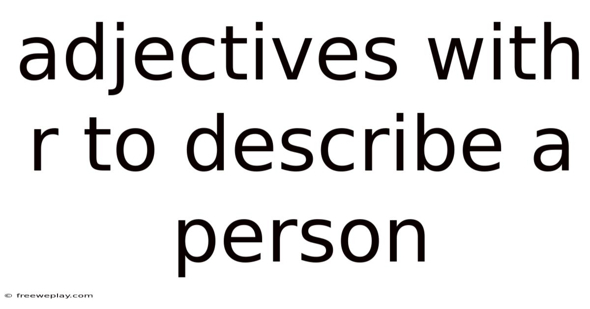 Describing human character is one of the most nuanced challenges in language. Among the most versatile and expressive tools in the English lexicon are adjectives with R to describe a person. Whether you are crafting a compelling narrative, writing a professional recommendation, or simply trying to articulate why someone left a lasting impression, the right descriptive words transform vague observations into vivid portraits. These terms carry a distinctive phonetic weight and semantic richness that make them particularly effective for capturing complex personality traits, behavioral patterns, and interpersonal dynamics Surprisingly effective..