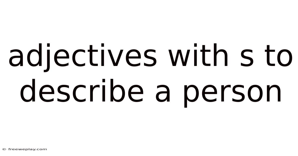 Language is a powerful tool that shapes how we perceive and interact with the world. Among its many components, adjectives play a critical role in painting vivid portraits of people, places, and ideas. When it comes to describing individuals, adjectives starting with the letter "S" offer a rich palette of traits, emotions, and characteristics. Whether you’re crafting a character in a novel, writing a performance review, or simply trying to articulate someone’s personality, mastering these adjectives can elevate your communication. This article dives deep into the world of "S" adjectives, exploring their meanings, applications, and impact And it works..
