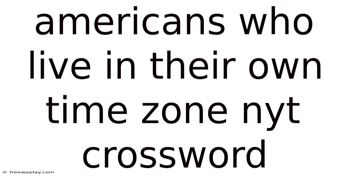 The phrase “Americans who live in their own time zone” may sound like a quirky clue from a Sunday‑morning New York Times crossword, but it actually points to a fascinating cultural and logistical phenomenon that shapes daily life across the United States. On the flip side, in the world of crossword puzzles, a clue of this sort typically seeks a witty answer that captures both geography and identity—often “New Yorkers,” “Californians,” or the more playful “Alaskans. This article unpacks the concept in depth, offering a step‑by‑step breakdown, real‑world examples, and a look at the underlying science of time‑zone economics. Which means ” Beyond the puzzle grid, however, the idea invites us to explore how living in a distinct time zone influences everything from work schedules and social habits to economic connections and even political attitudes. By the end, you’ll understand why the simple act of “living in your own time zone” matters far more than a clever crossword answer But it adds up..
