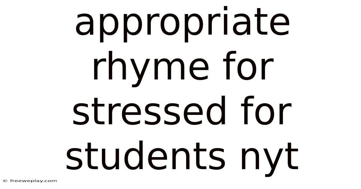 Appropriate Rhyme For Stressed For Students Nyt