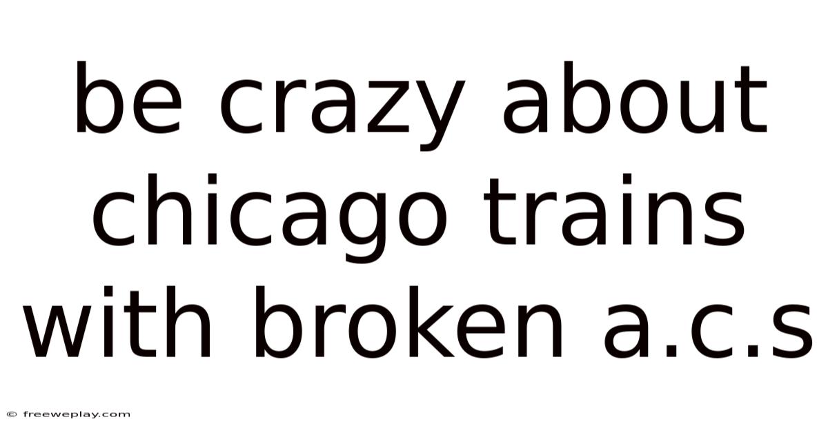 In the pantheon of urban transit enthusiast subcultures, few niches are as specific, sweaty, and strangely devoted as the community of individuals who are "crazy about Chicago trains with broken A.That's why c. s." This isn't about casual complaint; it's a form of deep, almost anthropological fascination with a persistent, systemic flaw in one of America's most iconic rail systems. Now, it’s the appreciation of a gritty, unglamorous reality—the transformation of a commuter's misery into a collector's item of urban experience. Worth adding: to be "crazy about" this phenomenon means to track the patterns of failure, to know which lines and car models are most afflicted, to document the sweat-drenched journeys, and to find a perverse pride in enduring what others refuse. It’s a badge of honor worn by those who see the broken air conditioner not as a mere inconvenience, but as a defining, almost romantic, characteristic of Chicago's "L" and Metra rail experience—a tangible link to the system's history, its budgetary constraints, and its unyielding, furnace-like summers That alone is useful..