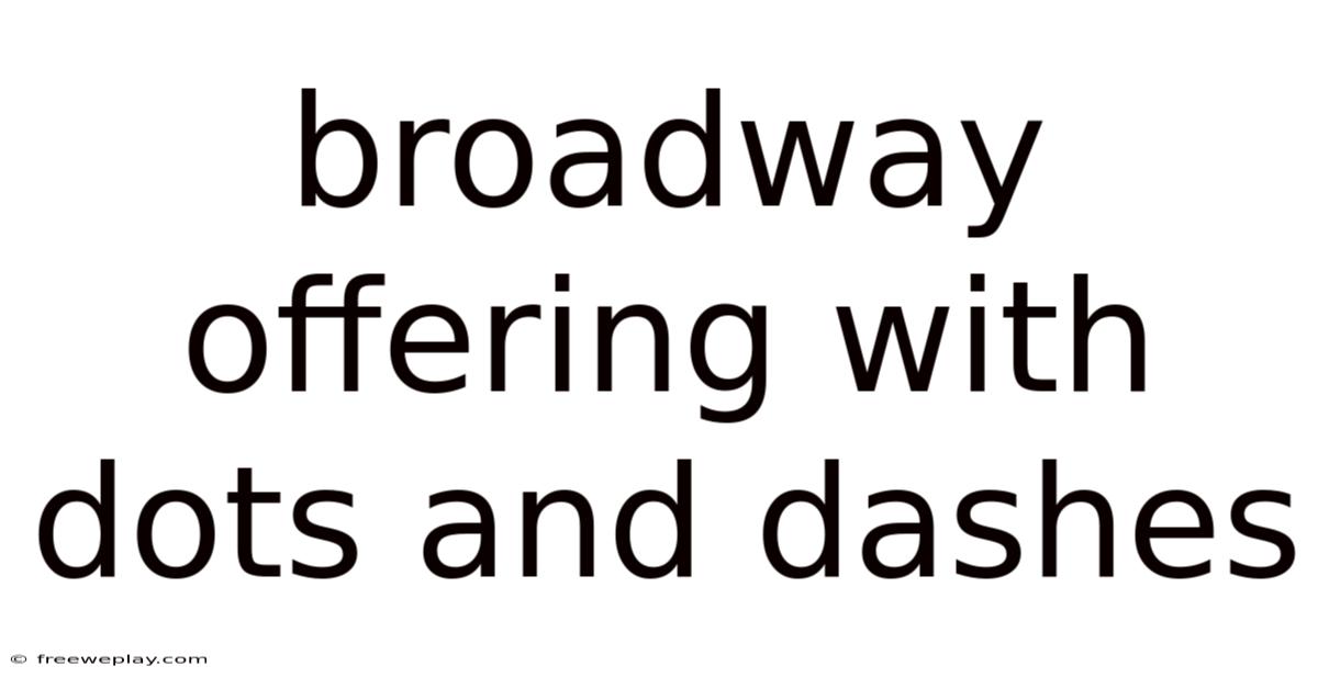 - Dashes are the connective tissue that links those highlights together, forming a coherent story about why the show matters now and how it will resonate with theatergoers. Think of it as a Morse‑code‑inspired blueprint: short signals (dots) punctuate the message, while longer signals (dashes) carry the weight of context and emotion. This method helps cut through the noise of a saturated market, ensuring that key selling points are instantly recognizable and easy to recall. For producers, mastering the broadway offering with dots and dashes can be the difference between a lukewarm reception and a sold‑out run.