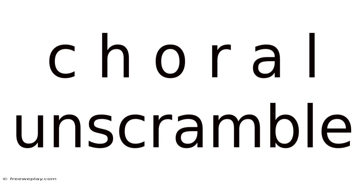 Unscrambling the letters "c h o r a l" reveals a range of words, with "choral" being the most prominent and widely recognized. Practically speaking, this exercise not only enhances our understanding of language and word formation but also highlights the versatility and creativity inherent in linguistic exploration. Whether in music, literature, or everyday conversation, the words formed from these letters offer a glimpse into the rich tapestry of the English language. By mastering the art of unscrambling, we can deepen our appreciation for the nuances and possibilities of words. More than just a game or a puzzle, unscrambling is a mental exercise that strengthens cognitive abilities, fosters a playful relationship with language, and ultimately unlocks a deeper understanding of the power and beauty of words Practical, not theoretical..