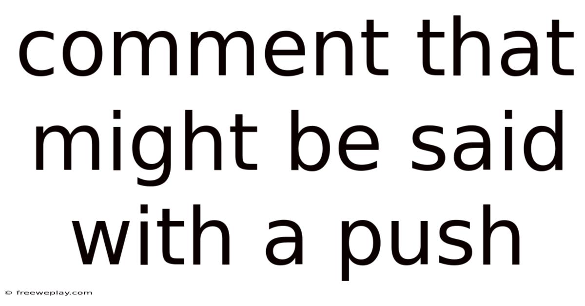 The phrase "comment that might be said with a push" refers to a type of verbal remark or statement delivered with an assertive, forceful, or even aggressive tone. Unlike casual or neutral comments, these remarks are often intended to provoke a reaction, assert dominance, or challenge the listener’s perspective. The term "push" here implies a deliberate effort to push boundaries, whether in a social, professional, or personal context. Plus, this kind of comment is not merely about the content of what is said but also about the manner in which it is delivered—often with a tone that conveys urgency, pressure, or even hostility. Understanding this concept is crucial in today’s communication-driven world, where interactions are increasingly mediated through digital platforms and face-to-face encounters. Whether in a workplace, a social gathering, or an online forum, comments made with a push can significantly influence relationships, perceptions, and outcomes. This article will explore the nuances of such comments, their psychological and social implications, and how they can be navigated effectively But it adds up..