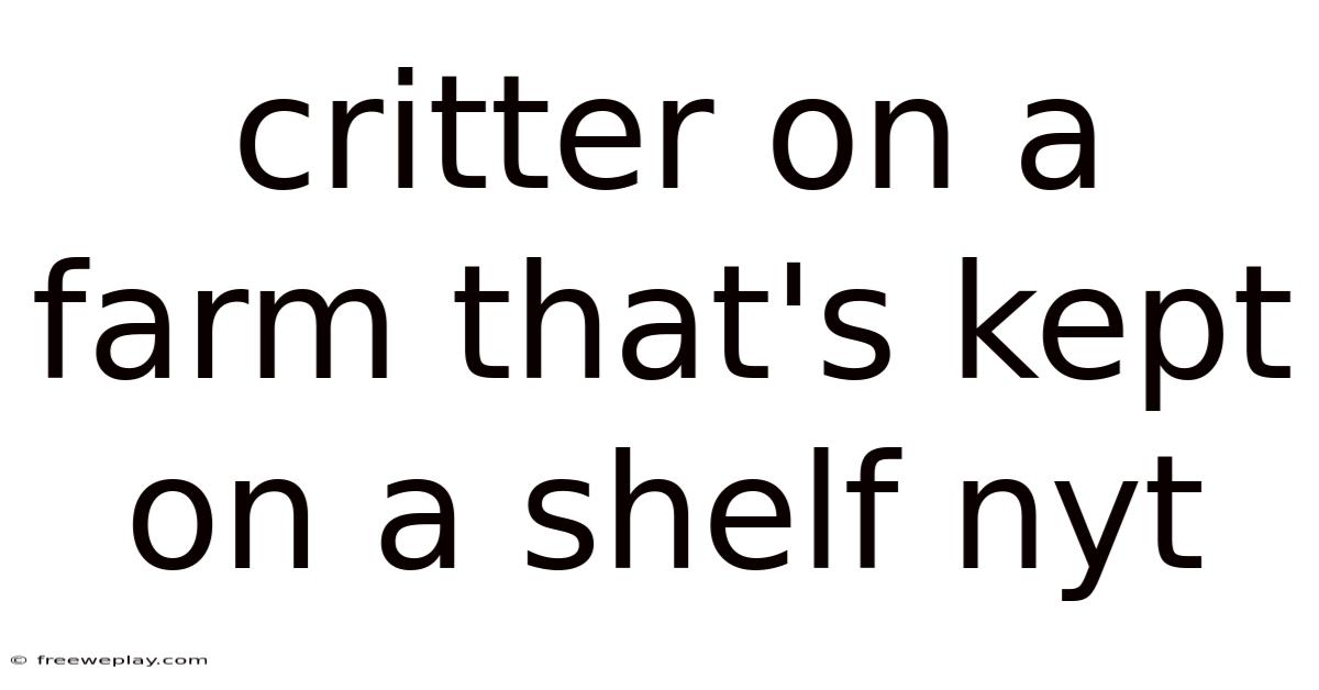 When you picture a farm, the first images that usually come to mind are sprawling fields, clucking chickens, and grazing cattle. Practically speaking, this surprisingly common sight, often highlighted in The New York Times (NYT) lifestyle and agriculture columns, offers a window into the evolving relationship between farmers, hobbyists, and the animals they care for. Yet, tucked away in the quieter corners of many modern farms, there exists a critter on a farm that's kept on a shelf – a small animal that serves both practical and sentimental purposes. In this article we will explore what these shelf‑bound critters are, why they are kept on farms, how to care for them responsibly, and what their presence tells us about contemporary farm life Still holds up..