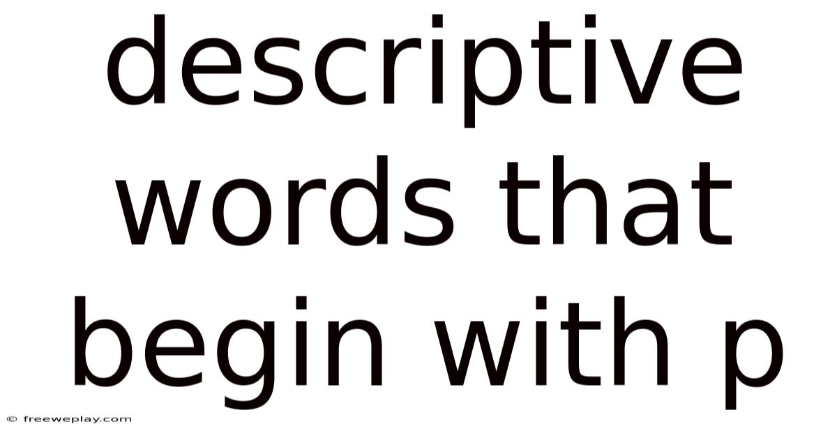 Descriptive words are the cornerstone of effective communication, enabling individuals to convey emotions, ideas, and experiences with precision and clarity. These words not only add richness to language but also allow for nuanced expression, whether in literature, everyday conversation, or professional writing. This article will get into the world of descriptive words that begin with P, exploring their meanings, applications, and the value they bring to language. Among the vast array of descriptive words in the English language, those beginning with the letter P hold a unique and versatile role. The significance of P words lies in their ability to evoke specific imagery, emotions, or actions, making them indispensable tools for writers, speakers, and language learners alike. By understanding these words, readers can enhance their vocabulary, improve their writing, and communicate more effectively in both personal and professional contexts Still holds up..