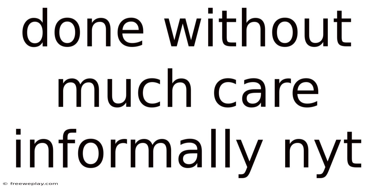 This type of clue highlights the NYT crossword's emphasis on cultural relevance and linguistic dexterity. Solvers must bridge the gap between formal definitions and informal usage, recognizing that "done without much care" can manifest in countless real-life situations—whether it's a hastily written email, a poorly assembled piece of furniture, or a last-minute assignment. But the clue's brilliance lies in its relatability; everyone has experienced or observed carelessness in action, making the answer feel both intuitive and rewarding when uncovered. It underscores how crosswords serve as mini-lessons in language, teaching solvers to recognize and appreciate the nuances between formal and casual speech And that's really what it comes down to. Which is the point..
