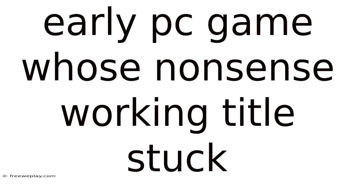 Thank you for reading about Early Pc Game Whose Nonsense Working Title Stuck.