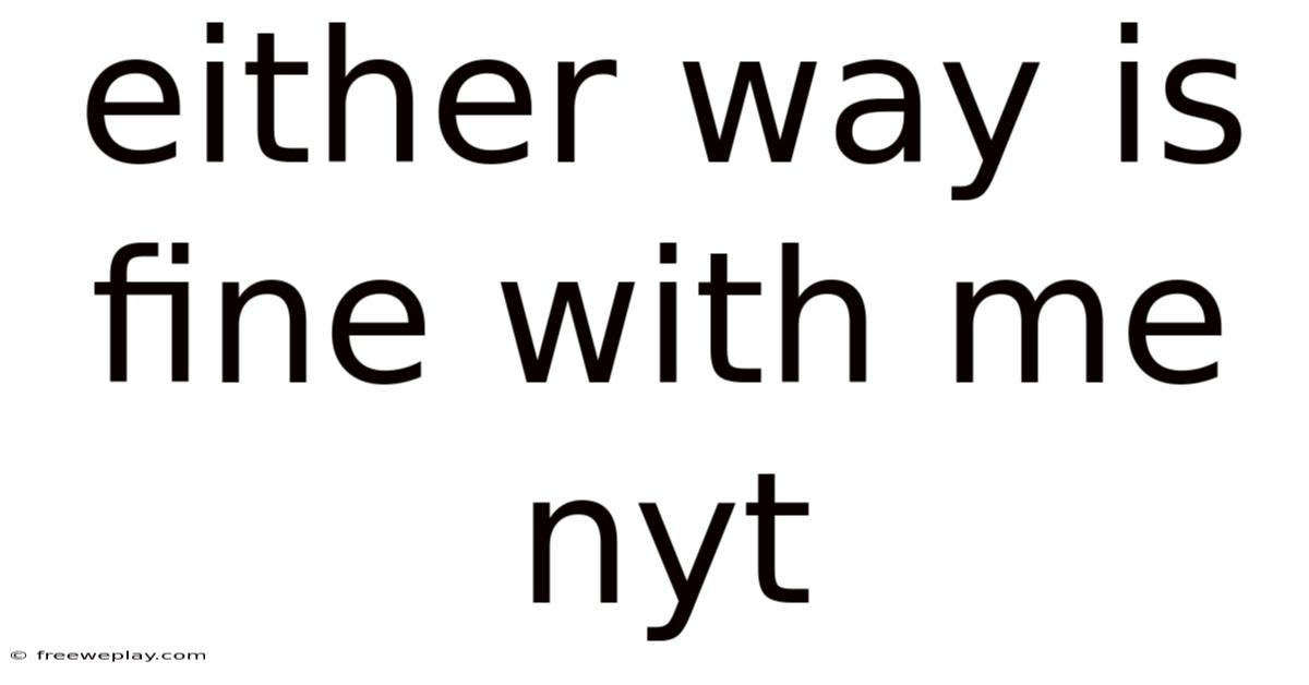 The phrase "either way is fine with me" is a common expression of indifference or flexibility, often used to convey that the speaker is comfortable with multiple options or outcomes. Think about it: recently, this phrase gained attention in The New York Times (NYT) when it was quoted in a news article discussing public sentiment during a political debate. While the phrase may seem simple, it carries significant implications for understanding human behavior, communication styles, and societal trends. So naturally, the quote, delivered by a local resident, highlighted the growing apathy among some citizens toward contentious policy decisions. This article explores the meaning, usage, and cultural relevance of the phrase, particularly in the context of its appearance in The New York Times, offering insights into how language reflects and shapes our perceptions of choice, indifference, and social dynamics Worth knowing..