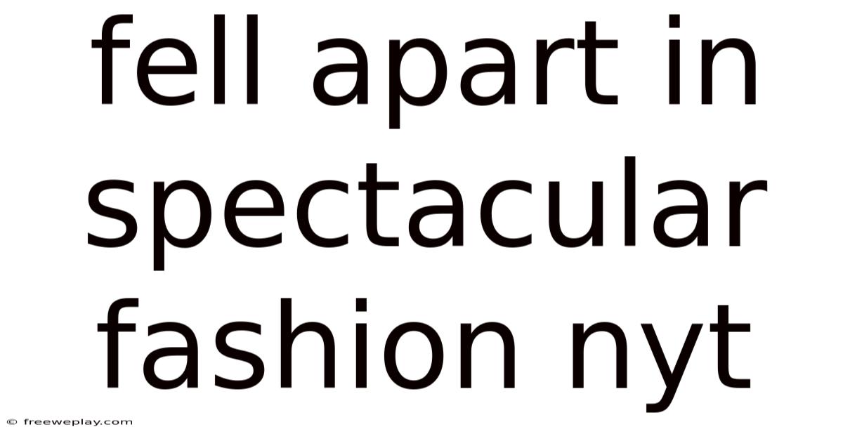 The phrase "fell apart in spectacular fashion" combines two powerful ideas: the notion of something breaking down or failing, and the dramatic, almost theatrical manner in which it happens. The word "spectacular" here does not imply success or beauty but rather emphasizes the scale, visibility, and impact of the failure. Even so, it suggests that the collapse was not quiet or unnoticed but rather loud, public, and perhaps even entertaining to observers. This kind of failure often leaves a lasting impression because of its intensity and the lessons it imparts about preparation, resilience, and the consequences of missteps But it adds up..