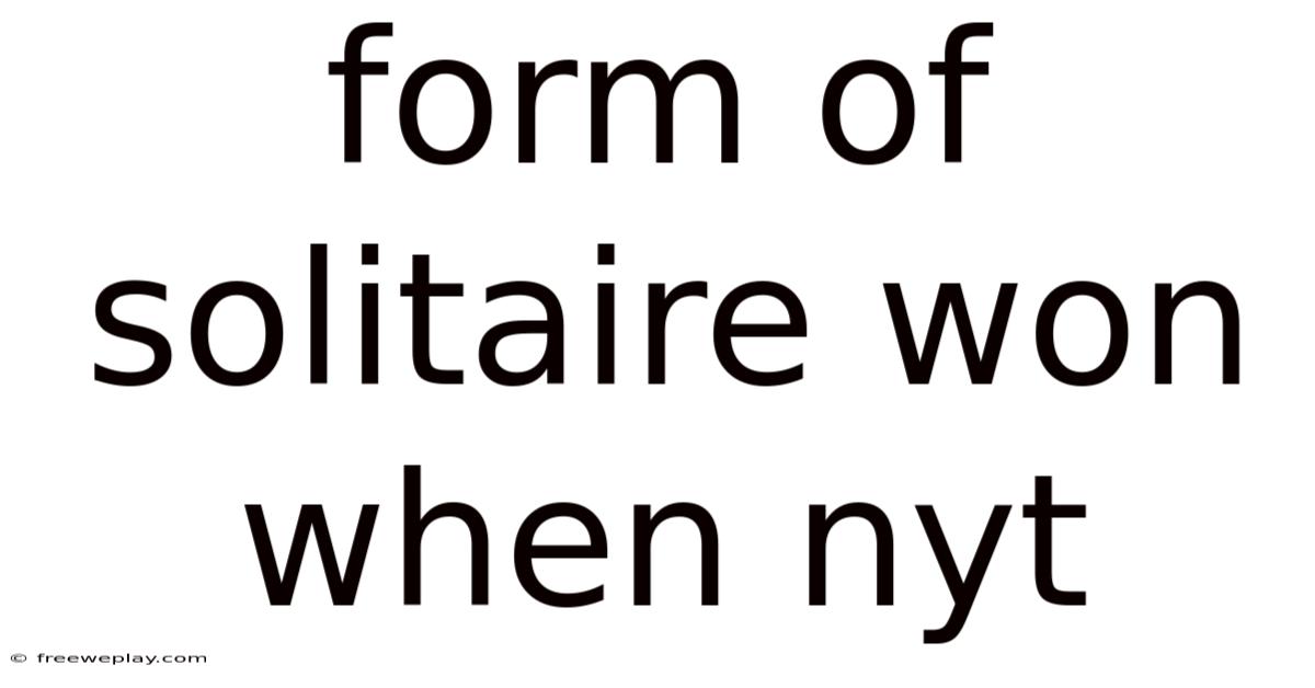 The phrase**“form of solitaire won when nyt”** may look cryptic at first glance, but it points to a very specific concept that puzzle enthusiasts and casual gamers alike encounter when they dive into the New York Times (NYT) daily solitaire game. In this article we will unpack the expression, explain the solitaire variant that the NYT uses, and show why mastering this particular form of solitaire is the key to achieving a win on the platform. By the end, you’ll have a clear roadmap for recognizing, playing, and ultimately succeeding at the solitaire version that the NYT publishes each day.