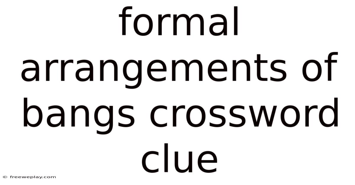 - Scan the clue for a phrase that could stand alone as a definition. In “formal arrangements of bangs” the natural candidate is formal arrangements.