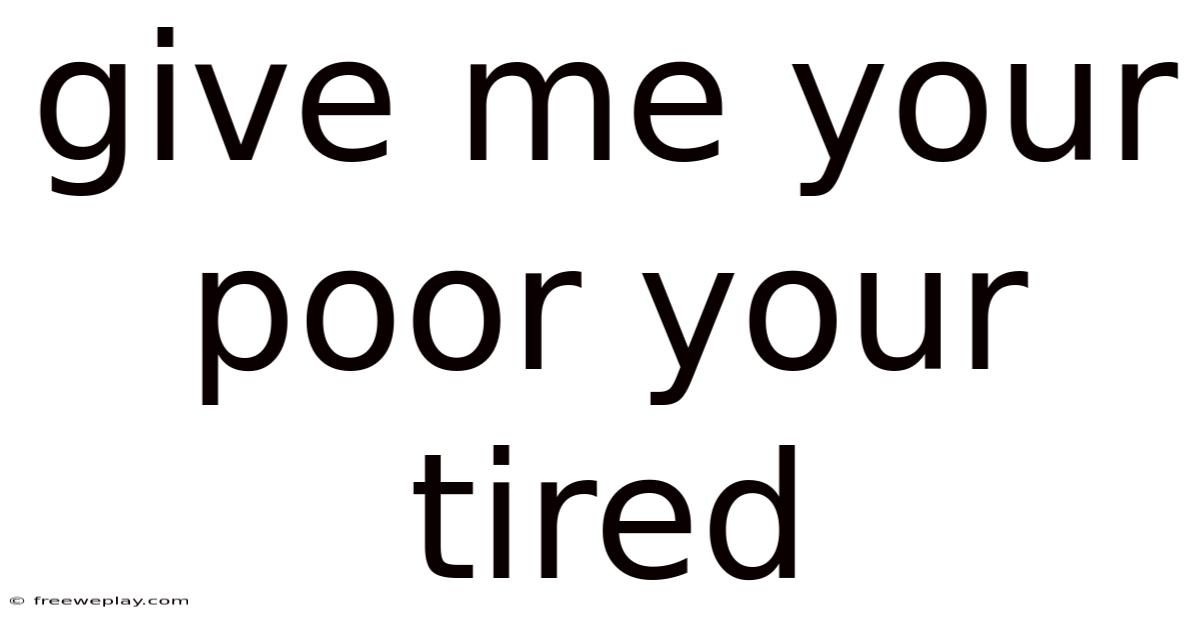 In today’s fast‑paced world, the simple request “Give me your poor, your tired” can sound like a cryptic mantra, but underneath it lies a powerful invitation to share vulnerability, empathy, and genuine connection. When someone asks you to “give” them your poor (the parts of you that feel lacking) and your tired (the moments when you feel exhausted), they are asking you to lower the guard you keep up for self‑protection. Worth adding: this article unpacks the meaning of that phrase, explores why offering our imperfections can deepen relationships, and provides practical steps for both the giver and the receiver. By the end, you’ll understand how embracing and sharing your “poor” and “tired” selves can encourage healthier communication, stronger bonds, and a more resilient sense of self‑worth That's the part that actually makes a difference..