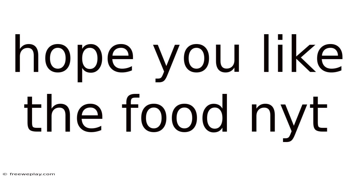 In the bustling world of culinary arts and dining culture, few phrases carry as much weight and anticipation as "hope you like the food" when preceded by the prestigious initials NYT. Because of that, when a Times critic visits a restaurant and later publishes their thoughts, those words can make or break an establishment's reputation. The New York Times has long been considered the gold standard of American journalism, and its food section represents perhaps the most influential platform for restaurant criticism and culinary discourse in the country. This article explores the significance of The New York Times' food journalism, examining how their approach to dining criticism has shaped the restaurant industry and continues to influence how we think about food in America. From the legendary reviews by Craig Claiborne to the contemporary perspectives of current critics, we'll get into the world of NYT food writing and understand why those simple four words—hope you like the food—carry such profound meaning in the culinary landscape That's the whole idea..