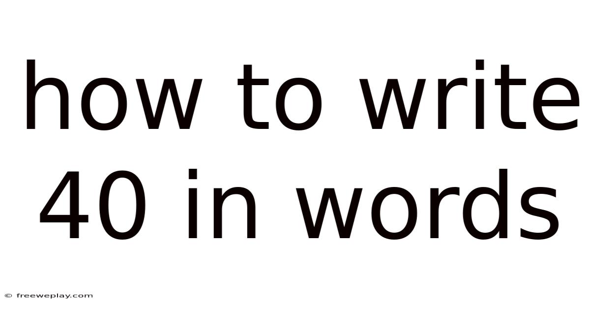 Understanding howto write 40 in words is a fundamental skill that blends basic numeracy with language proficiency. Whether you are filling out a check, drafting a formal document, or simply polishing your everyday communication, converting the numeral 40 into its written form—forty—requires attention to spelling rules and contextual awareness. This article will guide you through the underlying principles, step‑by‑step methodology, practical examples, and common pitfalls, ensuring you can confidently express the number 40 in written English every time And that's really what it comes down to..