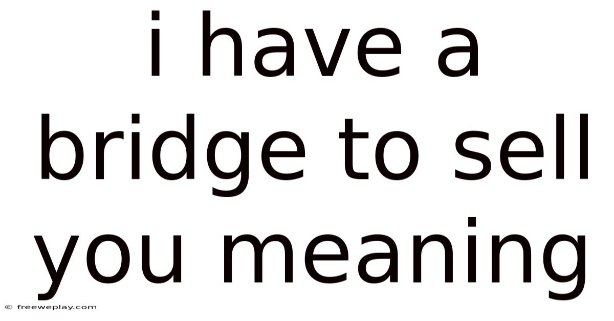 At its core, “I have a bridge to sell you” is a metaphor for a worthless or fraudulent proposition. It implies that the speaker is offering something of no real value—like a bridge that doesn’t exist or one that’s already been sold to someone else. The phrase is often used to mock someone who’s been duped or to highlight the absurdity of a scam Turns out it matters..