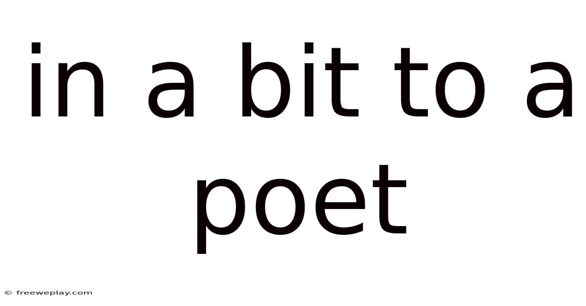 In a bit to a poet is a phrase that often surfaces in creative writing circles, workshops, and online forums when aspiring writers talk about their aspiration to become poets. While the wording may look like a typo, it actually captures a nuanced idea: a modest, deliberate step taken toward poetic expression. In this article we will unpack the phrase, explore its linguistic roots, break down the journey of becoming a poet, and provide practical examples that illustrate how a simple “bit” can launch a lifelong artistic adventure. By the end, you’ll have a clear roadmap and a deeper appreciation for why even the smallest poetic gesture matters And that's really what it comes down to..