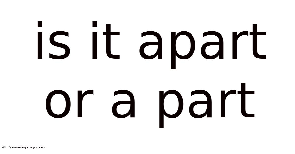 The question “Is it apart or a part?” encapsulates a fundamental truth about relationships and identity. It demands a nuanced understanding that acknowledges both the unity and diversity of components within a system. Whether something is deemed a part or apart depends on the context in which it is examined—whether through scientific rigor, practical application, or philosophical reflection. This article has explored the complexities that define this distinction, emphasizing the importance of context in shaping perception. The bottom line: recognizing the interplay between individuality and collective identity enriches our ability to engage meaningfully with the world around us, fostering a deeper appreciation for the layered networks that sustain life, technology, and knowledge. In mastering this balance, we open up greater insight into both the subject and