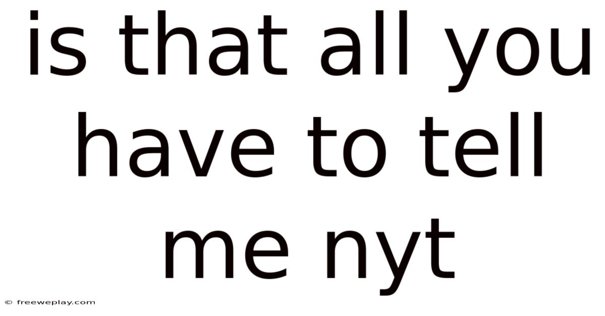 Have you ever come across the phrase “Is that all you have to tell me?” and wondered why it feels so loaded? Whether it pops up in a heated debate, a casual chat, or a late‑night news segment, the expression carries a weight that can change the tone of a conversation overnight. Day to day, in this article we’ll break down what the phrase really means, explore its origins, and look at how it’s used in everyday life, especially in the context of news discussions on platforms like The New York Times (NYT). By the end, you’ll be able to spot the subtle cues that signal disappointment, curiosity, or confrontation—and use the phrase yourself with confidence The details matter here..