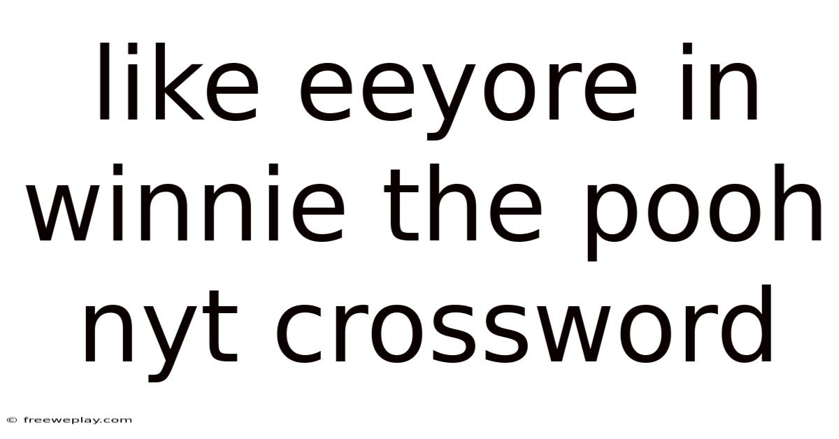 The New York Times crossword puzzle is renowned for its clever clues that blend pop culture, literature, and wordplay, and one particularly memorable clue is "like Eeyore in Winnie the Pooh." This seemingly simple prompt references one of literature's most iconic melancholic characters, inviting solvers to connect his distinctive traits to a specific answer. At its core, the clue points to Eeyore's defining characteristics—his perpetual gloom, slumped posture, and signature color—to reveal the solution: BLUE. This article explores the depth behind this clue, examining Eeyore's cultural significance, the art of crossword construction, and why this particular reference resonates so strongly with puzzle enthusiasts and fans of A.A. Milne's timeless tales.