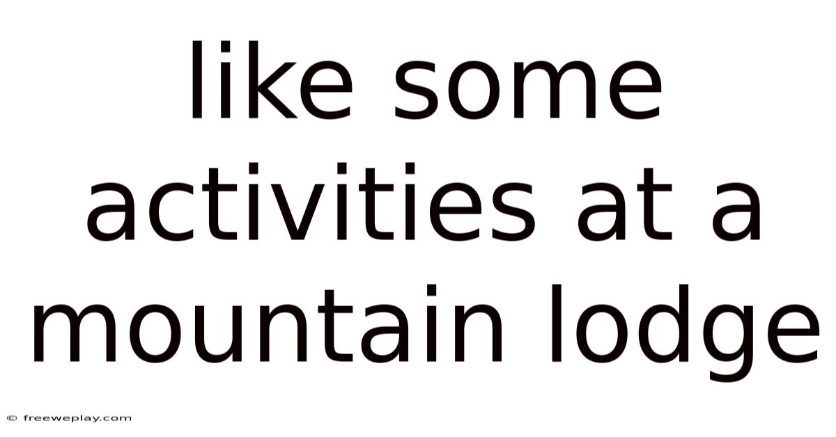 Like Some Activities At A Mountain Lodge