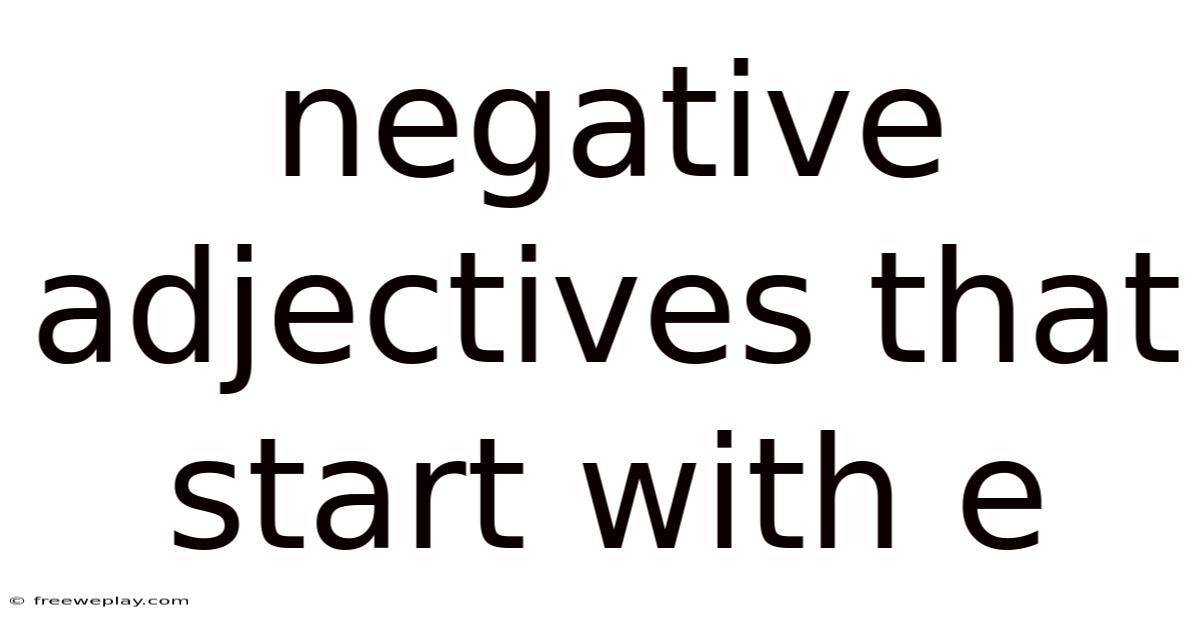 Negative adjectives that start with e cover a wide spectrum, ranging from mild disapproval to severe condemnation. Words such as erratic, exhausting, and egocentric reflect behaviors or conditions that disrupt balance, drain energy, or prioritize self-interest over collective well-being. These adjectives often arise in contexts where expectations have not been met, trust has been compromised, or safety feels uncertain. By labeling experiences accurately, speakers can set boundaries, request change, or protect themselves from repeated harm without resorting to exaggerated or inflammatory language Easy to understand, harder to ignore. Turns out it matters..