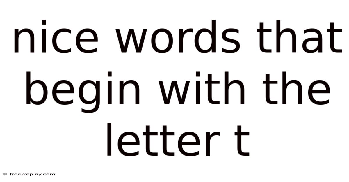What makes a word "nice" is subjective, but in this context, we focus on terms that are generally associated with positivity, respect, or beauty. The letter T itself is versatile, often associated with strength and clarity, which makes it an ideal starting point for words that resonate with positivity. Still, this article explores the significance of these words, their applications, and how they can be used to enhance both spoken and written communication. Words like thankful, tender, or trustworthy exemplify this quality, as they convey sincerity, care, or reliability. By understanding and utilizing these nice words that begin with the letter T, individuals can enrich their vocabulary and contribute to a more compassionate and expressive world And that's really what it comes down to..