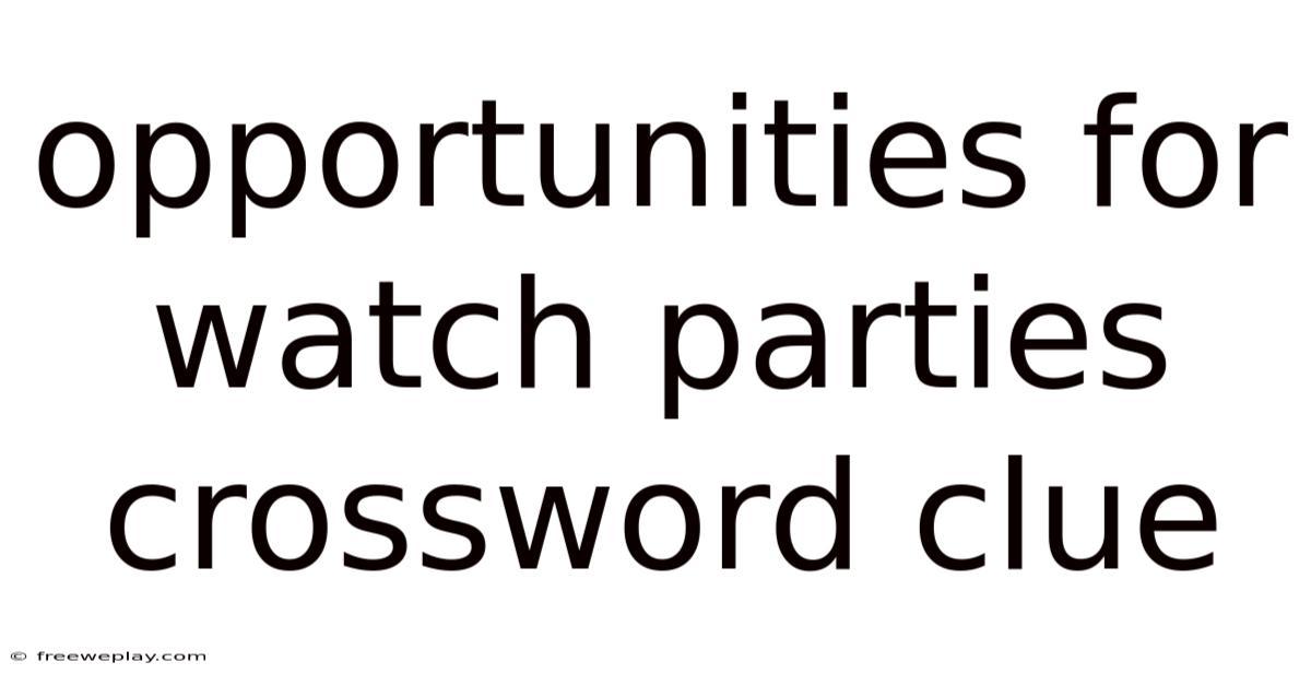 Crossword puzzles are more than just a pastime; they are a mirror reflecting the evolving language and culture of our time. Practically speaking, understanding this clue, therefore, requires unpacking the modern ritual of communal viewing, its technological enablers, and its deep social roots. Practically speaking, the "opportunities" are the occasions themselves: the game, the series finale, the awards show, or the much-anticipated political debate that provides the reason to gather. Practically speaking, a clue like "opportunities for watch parties" is a perfect example, capturing a distinctly 21st-century social concept within the compact, precise language of a puzzle grid. Also, a "watch party" is a scheduled social gathering, either physical or virtual, centered around collectively viewing a specific broadcast, stream, or live event. At its core, this clue points toward a specific answer—most commonly the six-letter word EVENTS—but its true value lies in what it represents. This article will serve as a complete walkthrough, transforming a simple crossword answer into a lens through which to examine contemporary social connection, media consumption, and even the psychology of shared experience It's one of those things that adds up. But it adds up..